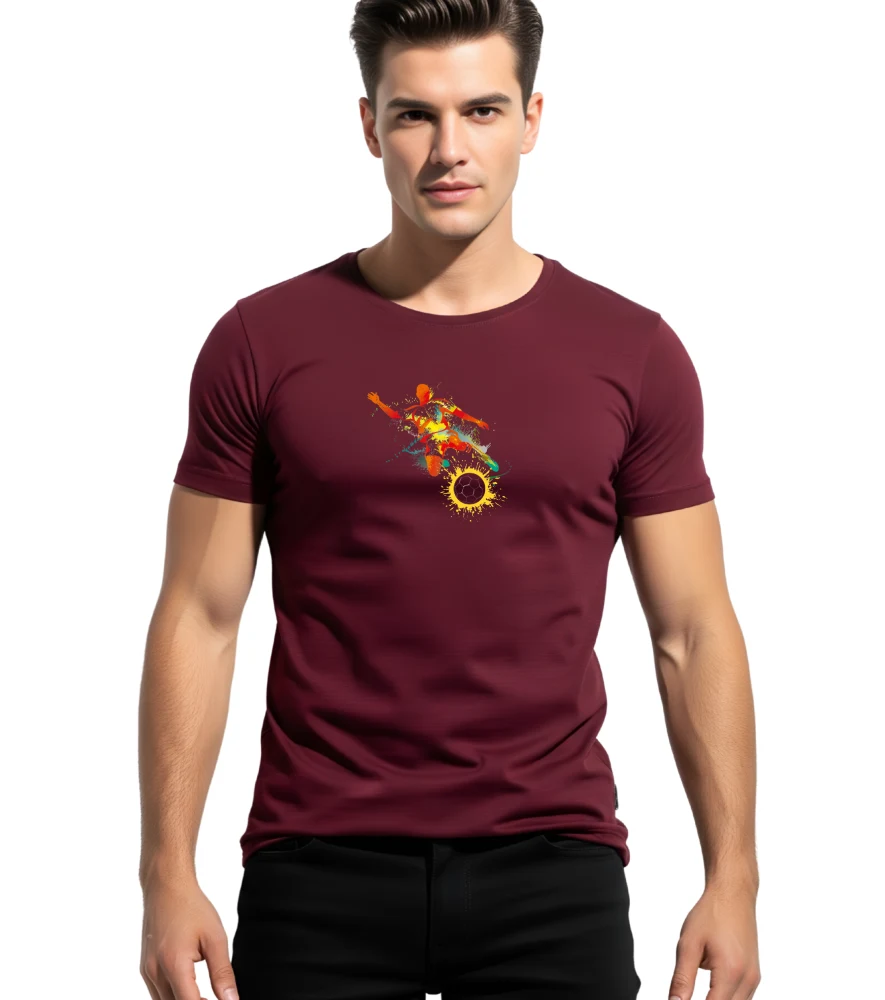 Add a sporty edge to your casual look with this maroon graphic t-shirt featuring a vibrant football splash design. Made from 100% premium cotton, it offers all-day comfort, breathability, and a perfect fit for everyday wear or game-day vibes.