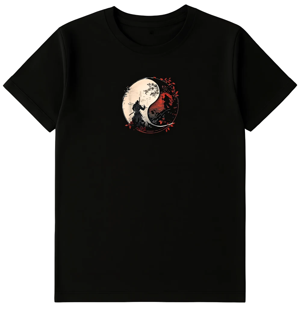 Balance strength and serenity with the Samurai Yin-Yang graphic tee. Featuring an artistic design of two samurai within a yin-yang circle, this T-shirt blends boldness and calm in perfect harmony. Crafted from soft, breathable cotton, it’s ideal for those who appreciate art, culture, and effortless street style.
