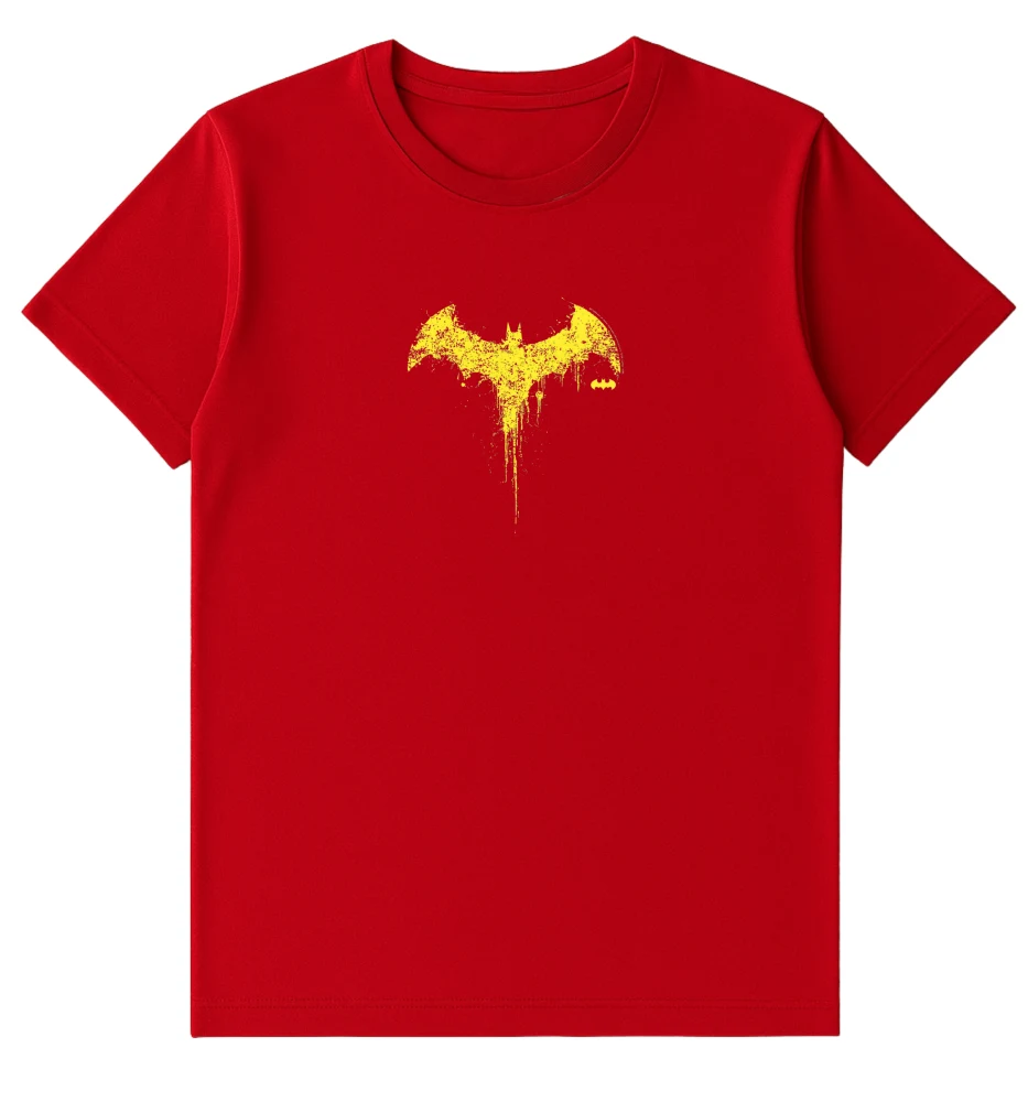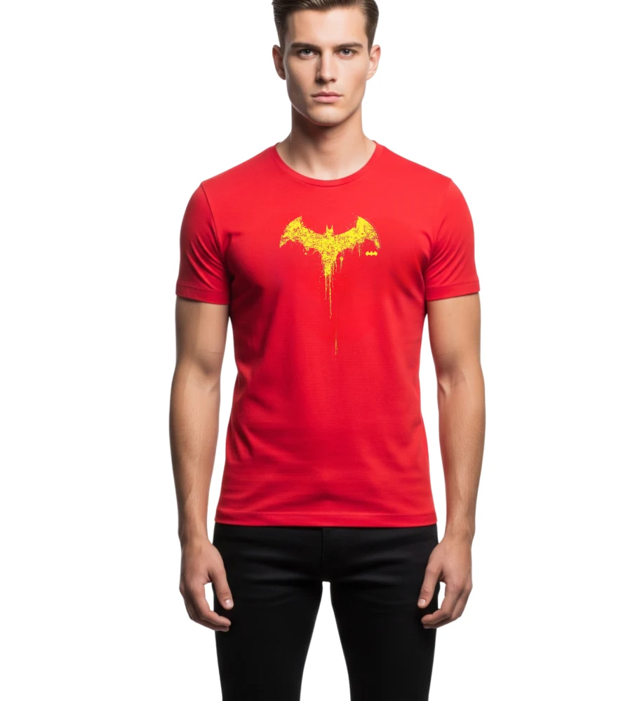 Elevate your casual look with this bold red graphic T-shirt featuring a striking yellow bat emblem. Designed for comfort and style, it’s made from soft, breathable cotton fabric that keeps you cool all day. Perfect for fans of edgy streetwear and statement looks.