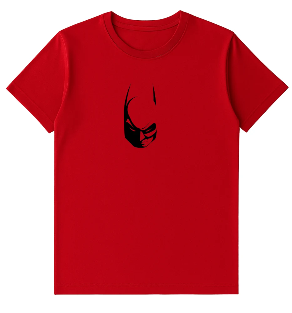 Unleash your inner hero with this bold red Batman-themed T-shirt. Featuring a sleek black Batman face graphic on the chest, this tee brings together comfort and cool style. Perfect for casual outings or statement streetwear looks.