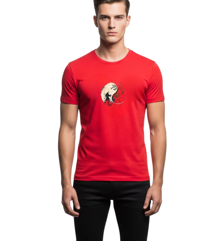 Show off your bold style with this Red Samurai Graphic T-Shirt. Featuring a striking samurai and moon design, this tee brings together art and attitude in a comfortable, everyday fit. Crafted from premium cotton fabric, it ensures breathability and durability for all-day wear.