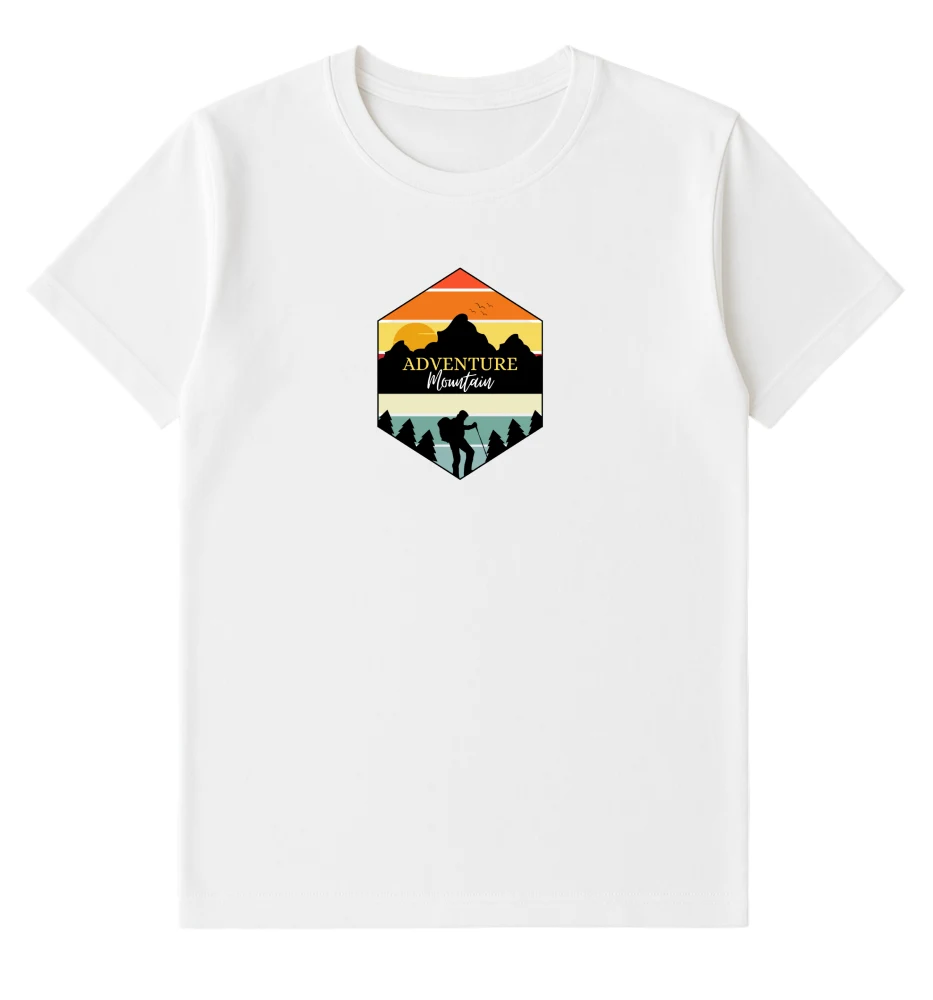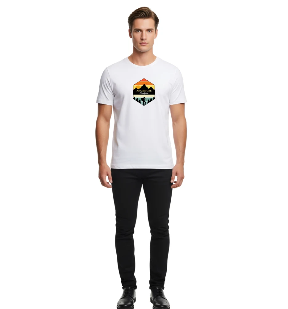 Add a touch of adventure to your style with this white *Adventure Mountain* T-shirt. Made from soft, breathable cotton, it features a bold mountain graphic and offers all-day comfort with a modern slim fit — perfect for travel or casual wear.