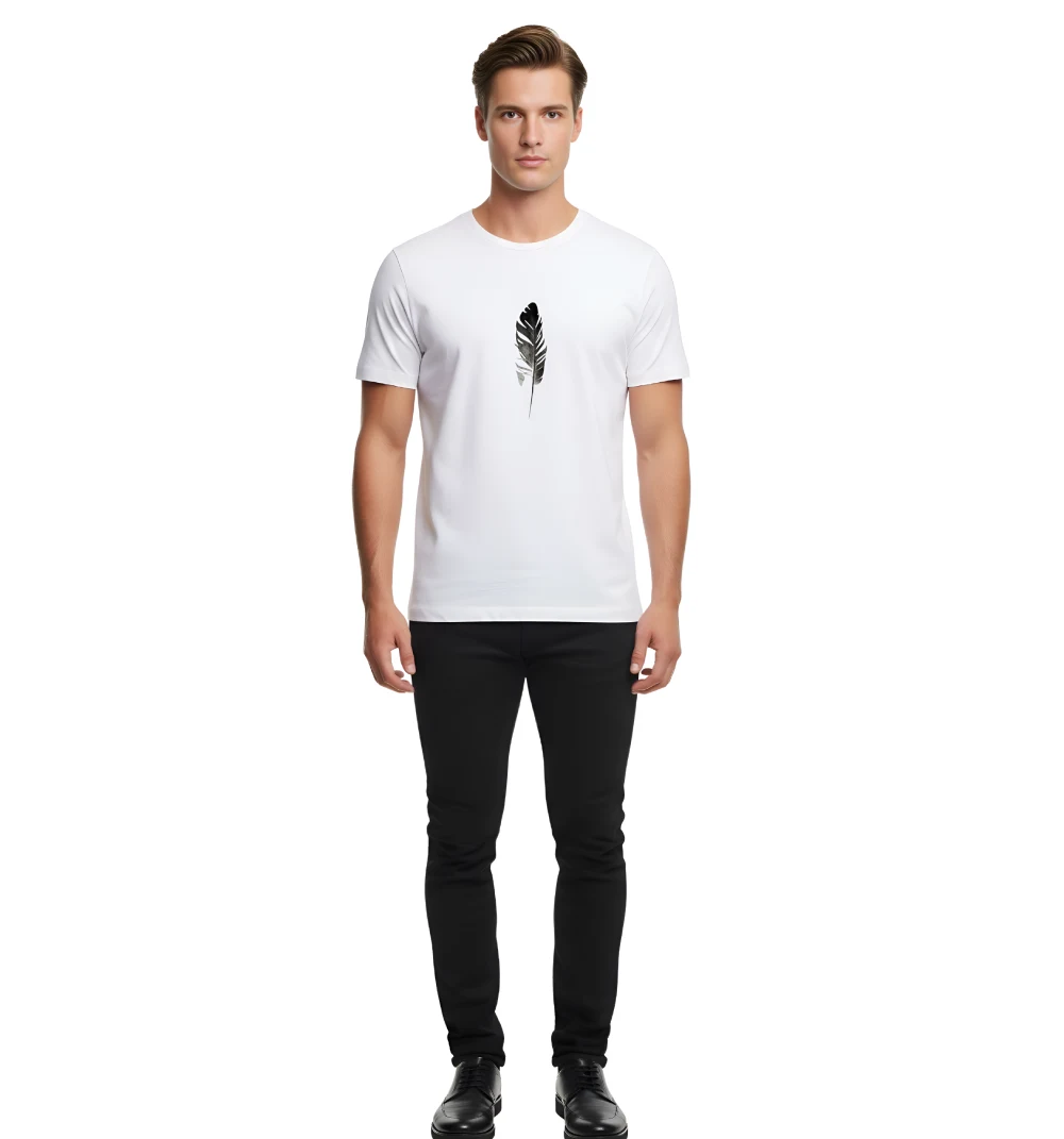 Add a touch of minimalistic charm to your wardrobe with this White Feather Graphic T-Shirt. Crafted from premium cotton fabric, it ensures all-day comfort and a soft feel. The subtle feather print adds elegance and calm to your casual style, making it perfect for everyday wear or weekend outings.