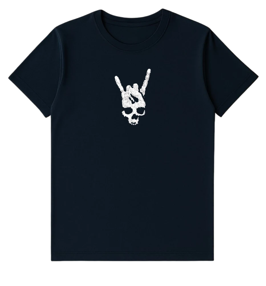 Rock your casual look with this Navy Blue Skull T-Shirt, featuring a bold skull-hand graphic that adds an edgy touch to your style. Made from 100% premium cotton, it ensures comfort, breathability, and durability for all-day wear.
