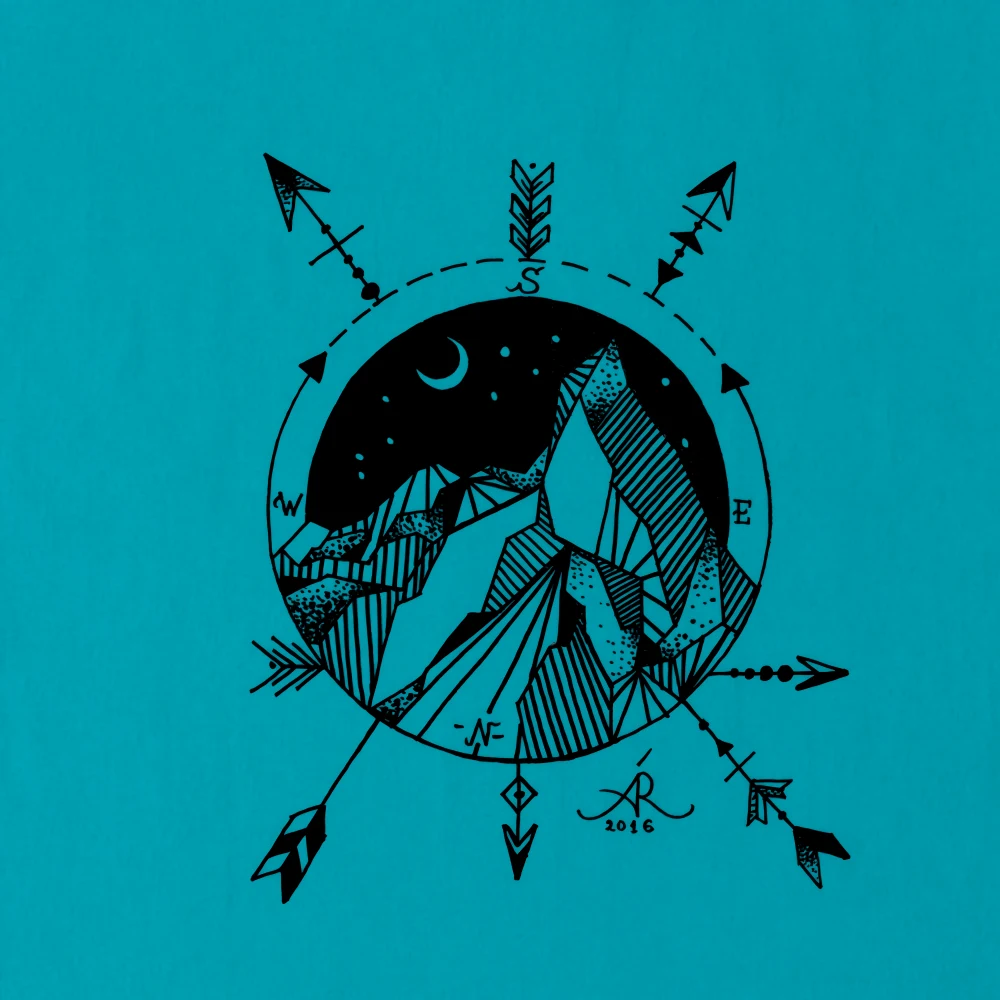 Stylish compass and mountain print design