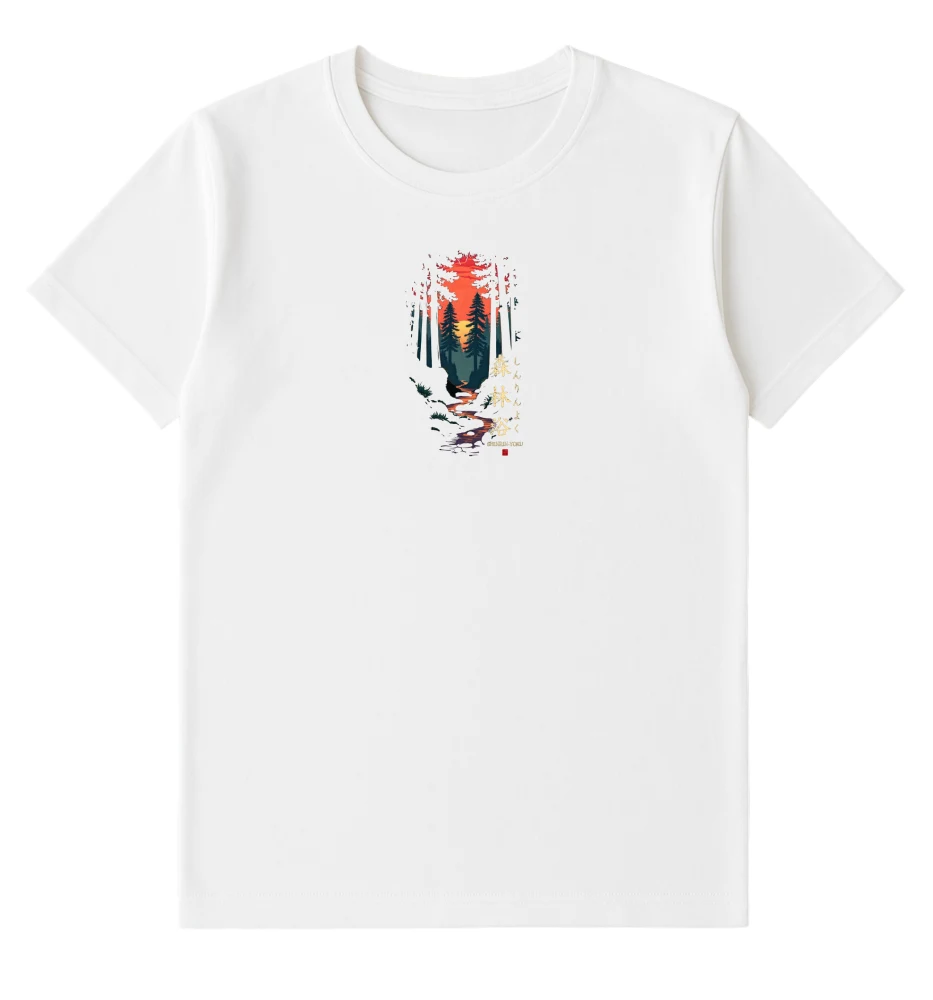 Add a bold edge to your look with this White Graphic Print T-Shirt, featuring a striking red sun and mountain forest design. Crafted from soft, breathable cotton, this tee offers both comfort and style — perfect for casual outings or daily wear.
