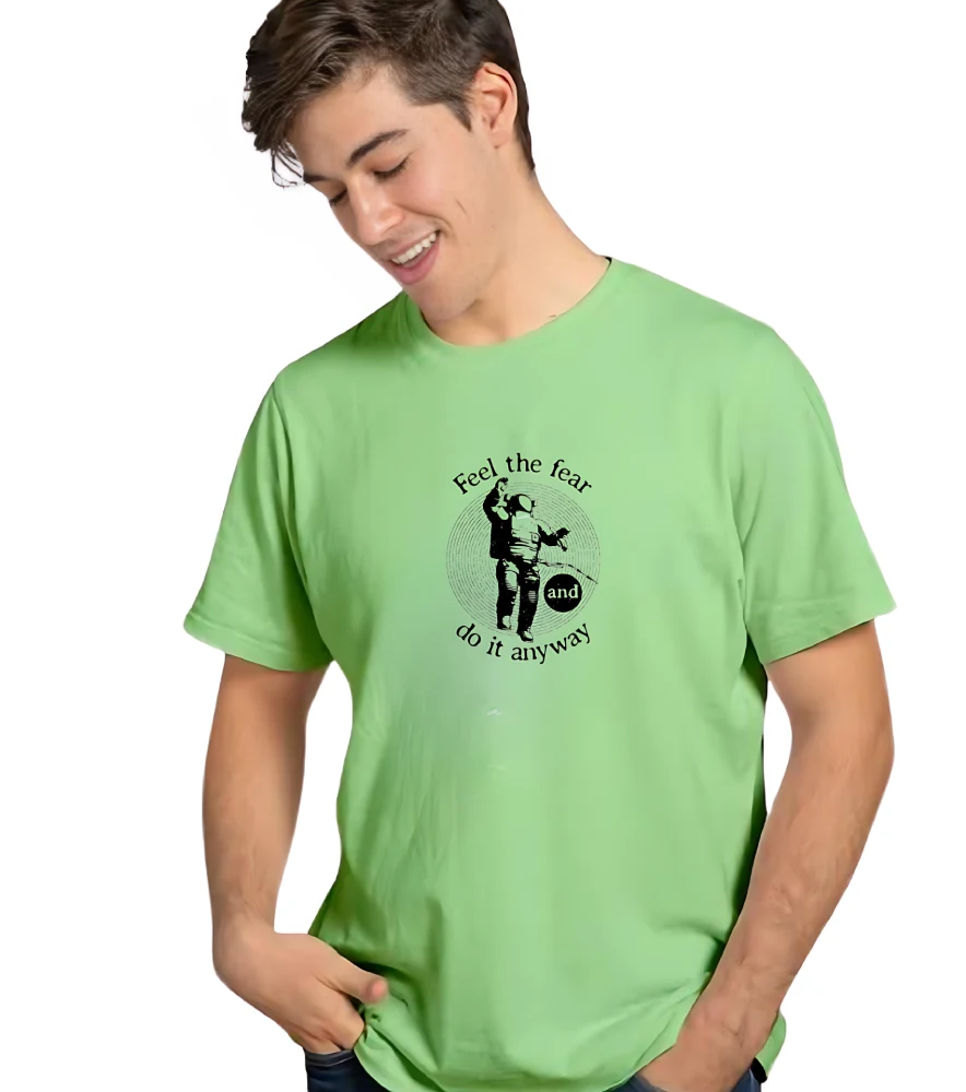Embrace bold confidence with this Green Astronaut Graphic T-Shirt, featuring an inspiring “Feel the Fear and Do It Anyway” print. Crafted from 100% premium cotton, this tee combines motivation and comfort in one effortlessly cool design — perfect for casual outings or everyday wear.